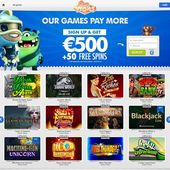 Slott Vegas je veľmi populárna kasíno predovšetkým vďaka špeciálnemu programu SuperchargeTM. S tým hráči môžu získať finančnú odmenu za každú výhru na vybraných hrách, ktorých však nájdete v kasíne doslova niekoľko stoviek. K prvému vkladu si môžete nechať pripísať 100% bonus až do výšky €500 a získate k nemu naviac 50 roztočení zadarmo. Požiadavky na pretočenie sú iba 30x bonus, čo je veľmi pekné. Vklady a výbery je možné uskutočniť pomocou bankového prevodu, e-peňaženiek alebo kreditných kariet.